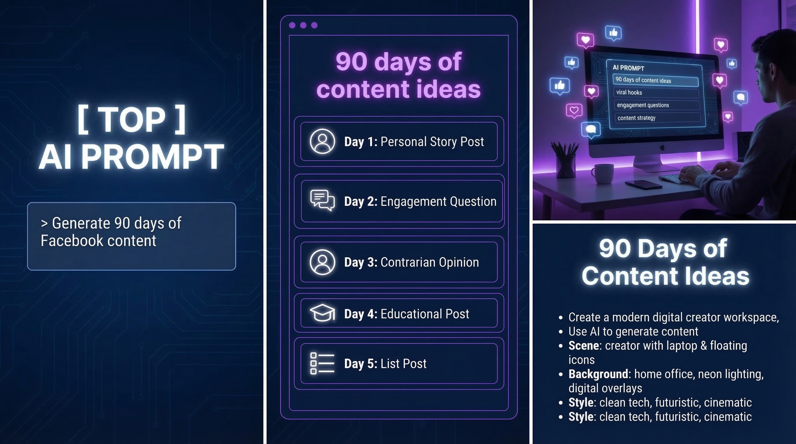 This AI prompt instantly generates a complete Facebook content strategy tailored to your niche.